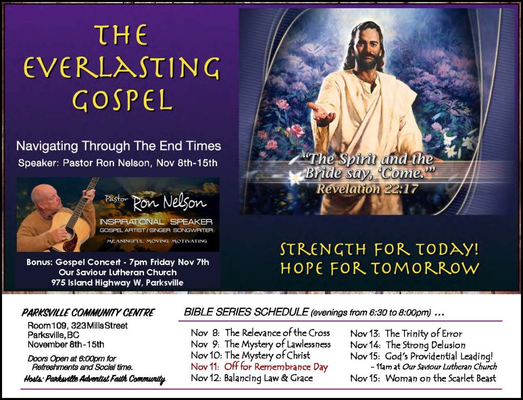 There is an additional “Bonus” gospel concert at 7 pm on Friday, November 7th, held at Our Saviour Lutheran Church, located at 975 Island Highway W, Parksville.